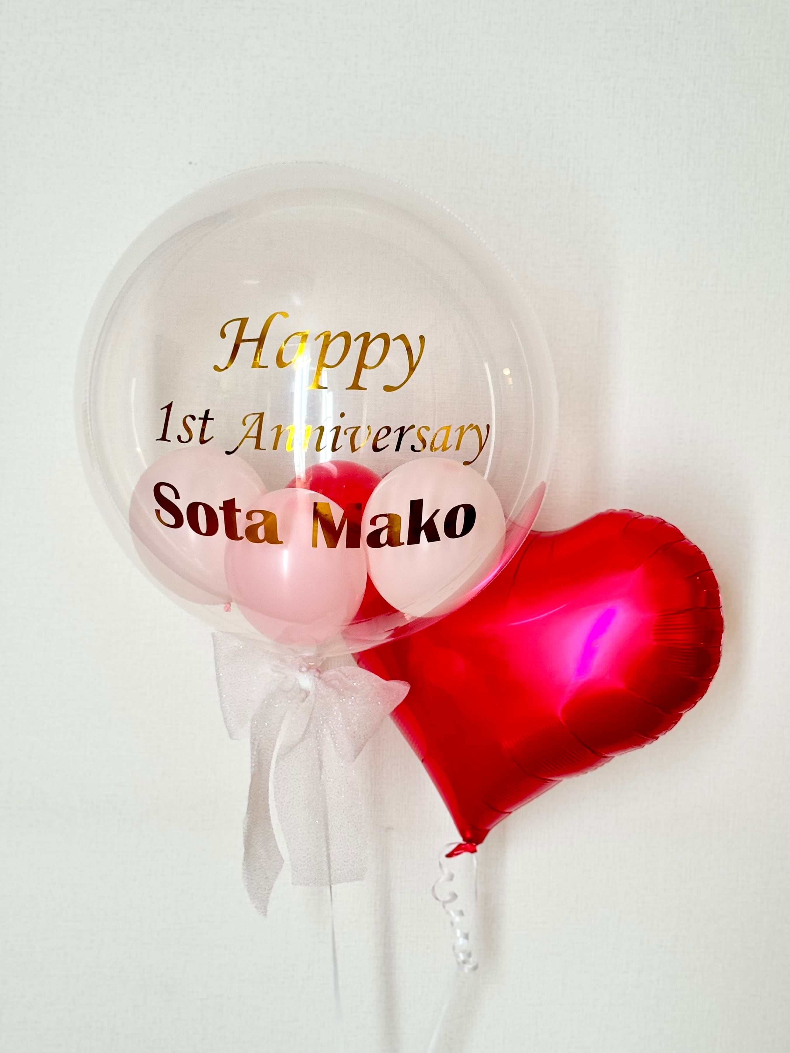 【結婚式/誕生日】浮かせてお届け/送料無料/名入れ無料/バルーン/白リボン/ピンク/赤/レッドピンクパッション