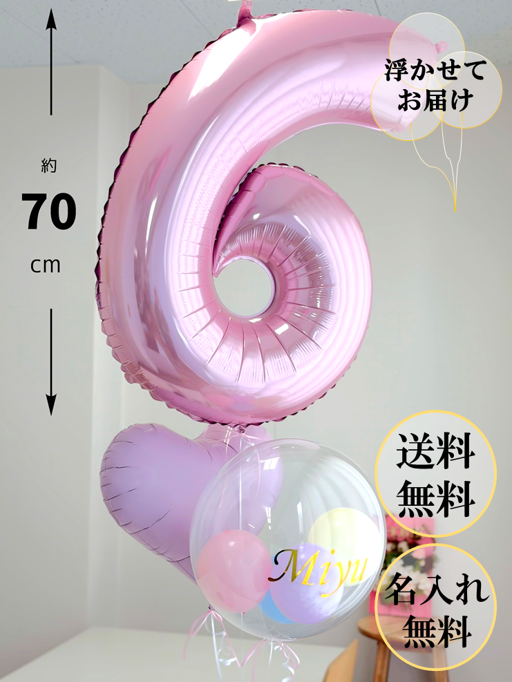 全長約70cm!!数字バルーンセット[ピンクナンバー+透明バルーン+ハートバルーン]浮かせてお届け/送料無料/名入れ無料【数字2桁OK】